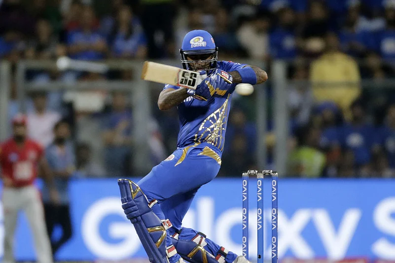 10:46 PM IST: Sam Curran strikes in his first over. Gets the big wicket of Suryakumar Yadav. Had him caught by sub Moises Henriques at deep backward square leg. FoW-56/2 (7.4 Over). Yadav made 21 off 15.