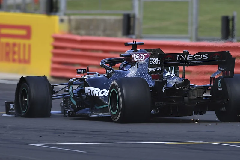 Hamilton suspected he was having trouble with his front left on the final lap, before it blew out completely, leaving him to complete the race on three tyres.
