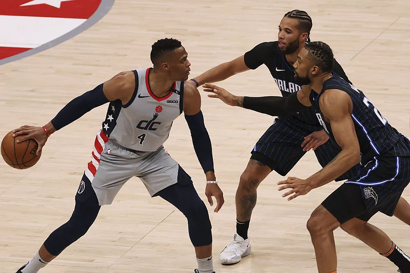 Former MVP Westbrook became the first player since Magic Johnson in 1982 to post triple-doubles in his team's first two games of the season. Westbrook put up 15 points, 15 rebounds and 12 assists in Washington's 130-120 loss to the unbeaten Orlando Magic. Acquired from the Rockets, Westbrook became the fourth player in NBA history to achieve the feat, along with Johnson (twice), Jerry Lucas and Oscar Robertson, though the nine-time All-Star is the first player to do it with a new team.