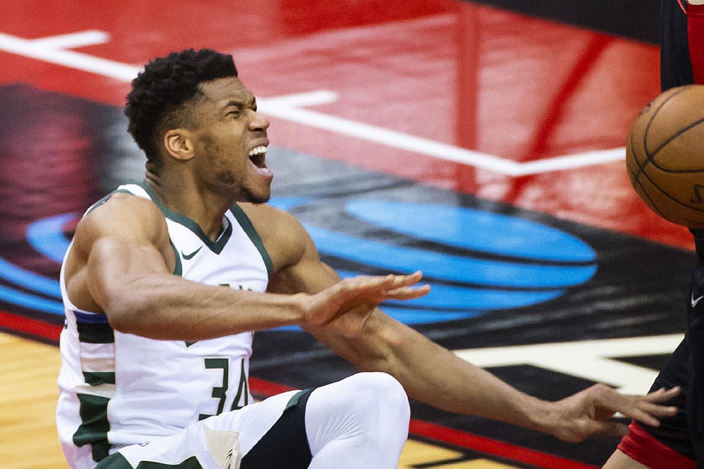 Milwaukee's Greek star left the game after just 46 seconds with a sprained right ankle suffered when he stepped on Kelly Olynyk's foot on a drive to the basket.