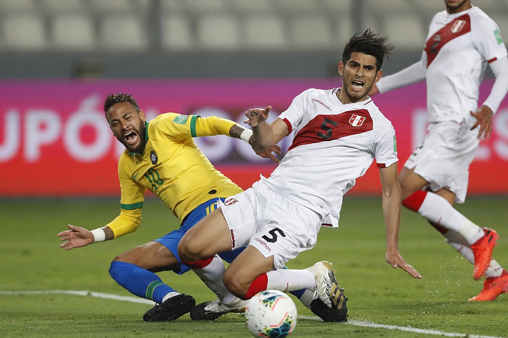 Neymar scored a hat-trick as Brazil twice came from behind to beat Peru 4-2 in CONMEBOL World Cup qualifying on Tuesday.
