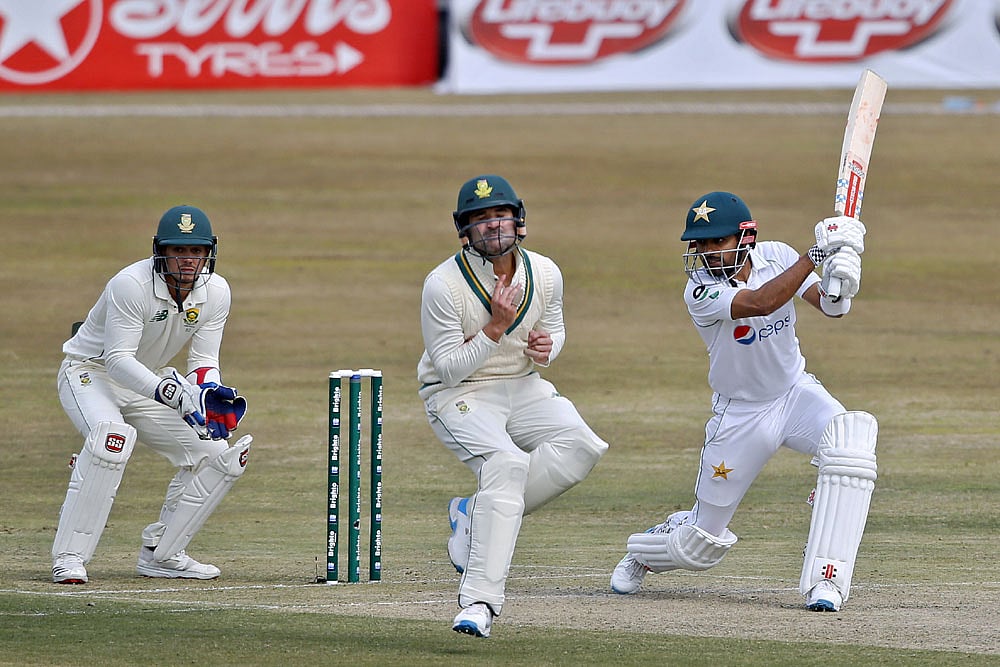 The pair displayed some wonderful shots as they took the match to South Africa, with Babar racking up 12 fours and Fawad five but rain during tea stopped them returning on 145-3.