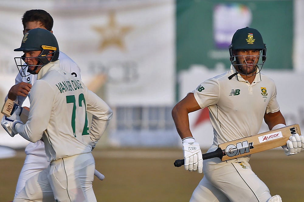 Pakistan had made an early inroad when Dean Elgar (17) threw away his wicket before tea as the left-hander chased a wide delivery from Shaheen Afridi (1-22) and was caught behind. Markram and van der Dussen then added a brisk 94 runs to bring South Africa back into contention.