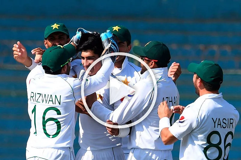 Bangladesh, trailing by 212 runs in the first innings after bowling out Pakistan for 445 in the second session, were rocked by Naseem in the 41st over of their second essay when he dismissed Najmul Hossain Shanto (38), Tajiul Islam (0) and Mahmudullah (0) in successive deliveries.