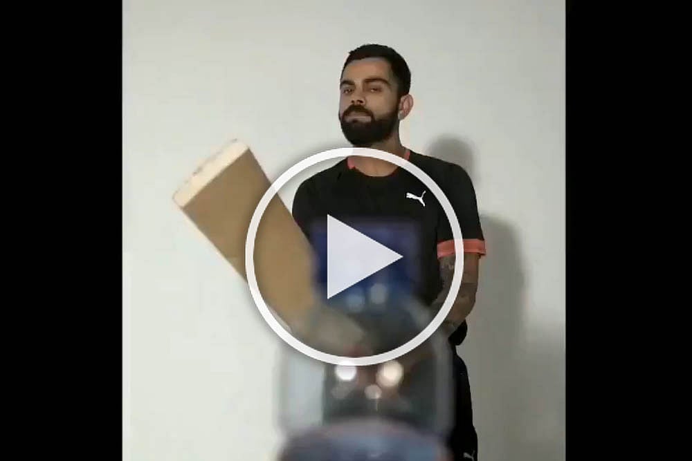 Being original, Kohli used his bat to unlatch the cap from the bottle. He captioned the video as, "better late than never".