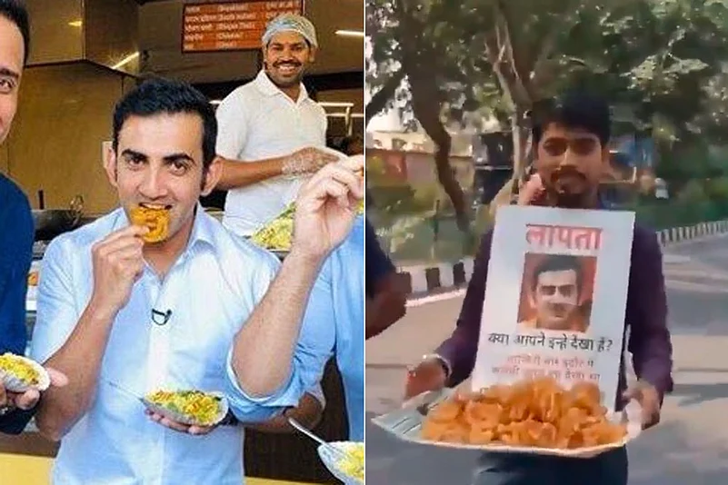 The 'missing' posters surfaced in the ITO area in Delhi on Sunday. Pictures of Gambhir, who appears on sports channels for cricket commentary, enjoying 'jalebis' in Indore on the same day also surfaced on social media.