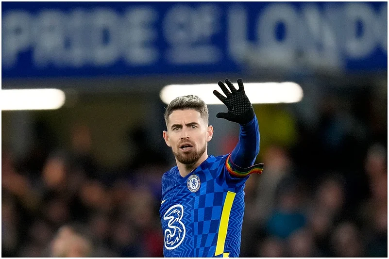 Jorginho was around the halfway line when he failed to control Bruno Fernandes’ hooked clearance from the edge of the Manchester United penalty area five minutes into the second half.