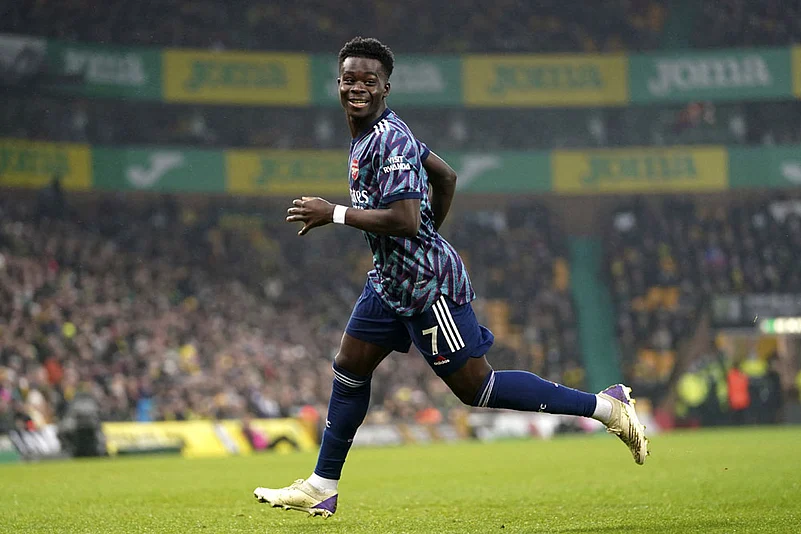 A brace from Bukayo Saka helped Arsenal solidify its position among the top four in the Premier League with a 5-0 victory over bottom-of-the-table Norwich City at Carrow Road on Sunday. (More Football News)