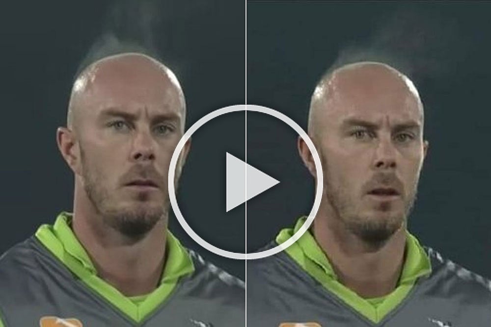 In a bizarre video, Lahore Qalandars's Australian batsman Chris Lynn is seen emitting steam from his head.