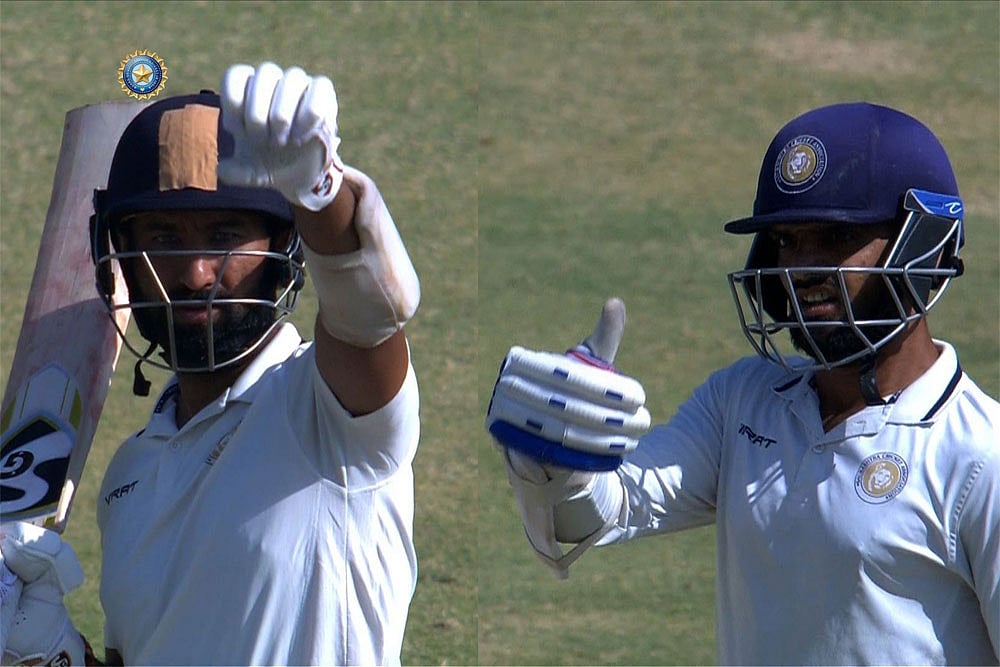 Vasavada brought his fifty with a four off off-spinner Arnab Nandi, driving him past mid-on. Pujara broke the shackles in the following over by stepping out to cover-drive left-arm spinner Ahmed. Soon after, the Test specialist survived an lbw appeal after Bengal went for the limited DRS.