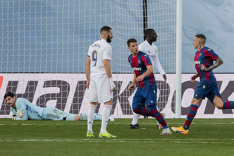 Half-time slowed Levante's momentum, but further controversy was not far away and Courtois came to the fore again when a VAR review ruled Vinicius Junior's foul on Carlos Clerc was on the line of the penalty area, saving superbly from Roger's subsequent spot-kick.