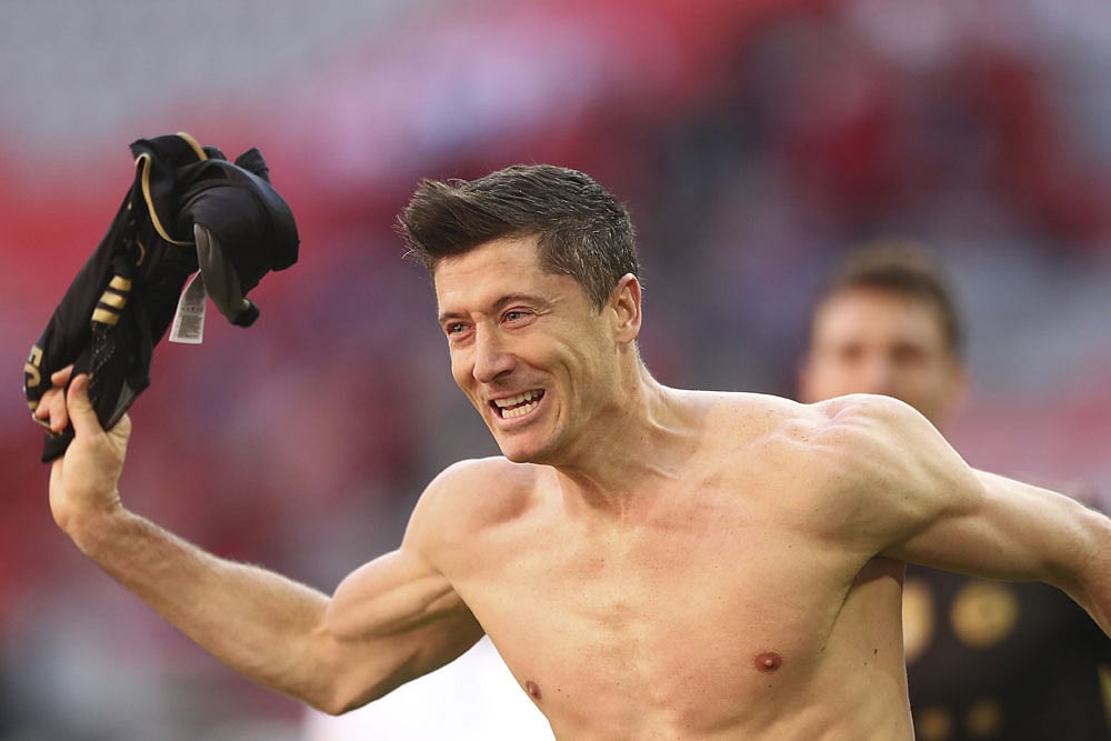 Robert Lewandowski broke Gerd Muller's long-standing record for goals scored in a single Bundesliga season with a last-gasp effort as Bayern Munich routed Augsburg 5-2 on a day of fond farewells. (More Football News)