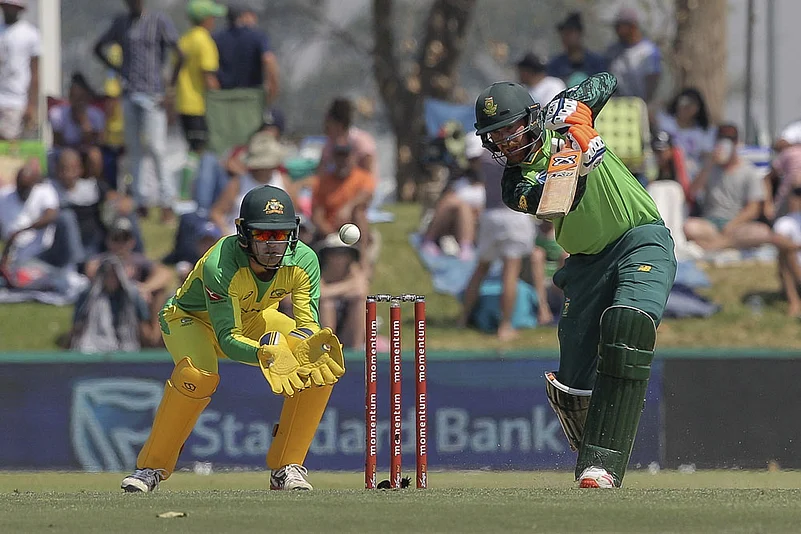 Malan fell first ball to Mitchell Starc, given out lbw on review, and captain Quinton de Kock was out tamely for 15 when he nicked one into the gloves of Alex Carey off Josh Hazlewood.