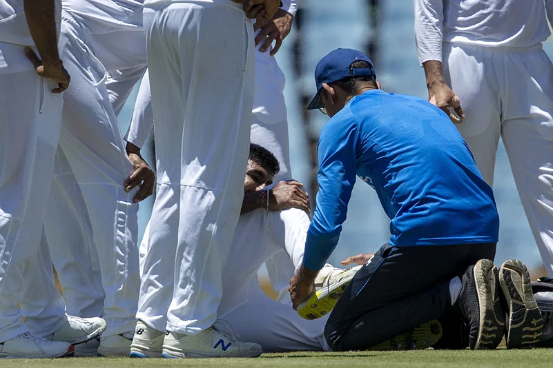 An ankle sprain forced India's pace spearhead Jasprit Bumrah off the field on the third day of the first Test against South Africa at SuperSport Park, Centurion on Tuesday.