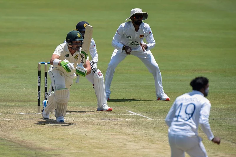 Elgar and Aiden Markram then put on 141 for South Africa's first wicket before the latter departed for 68, playing an aggressive drive outside off stump in keeping with the spirit of his innings but finding Shanaka at gully.