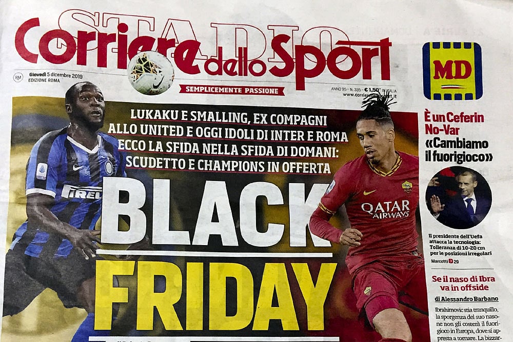 On Thursday, the Italian sports daily published the headline 'Black Friday' – accompanied by pictures of Roma's Chris Smalling and Inter's Romelu Lukaku – ahead of the Serie A clash between the two sides.