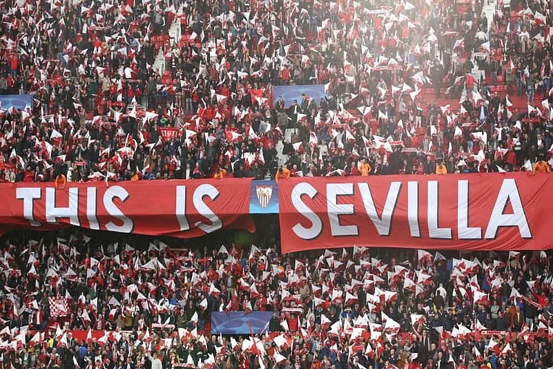 The approximate 250-metre walk to the Ramon Sanchez Pizjuan's north stand takes an age such is size of the gathering, which is essentially a huge street party. It's a fitting atmosphere and spectacle for Spain's fiercest city rivalry.