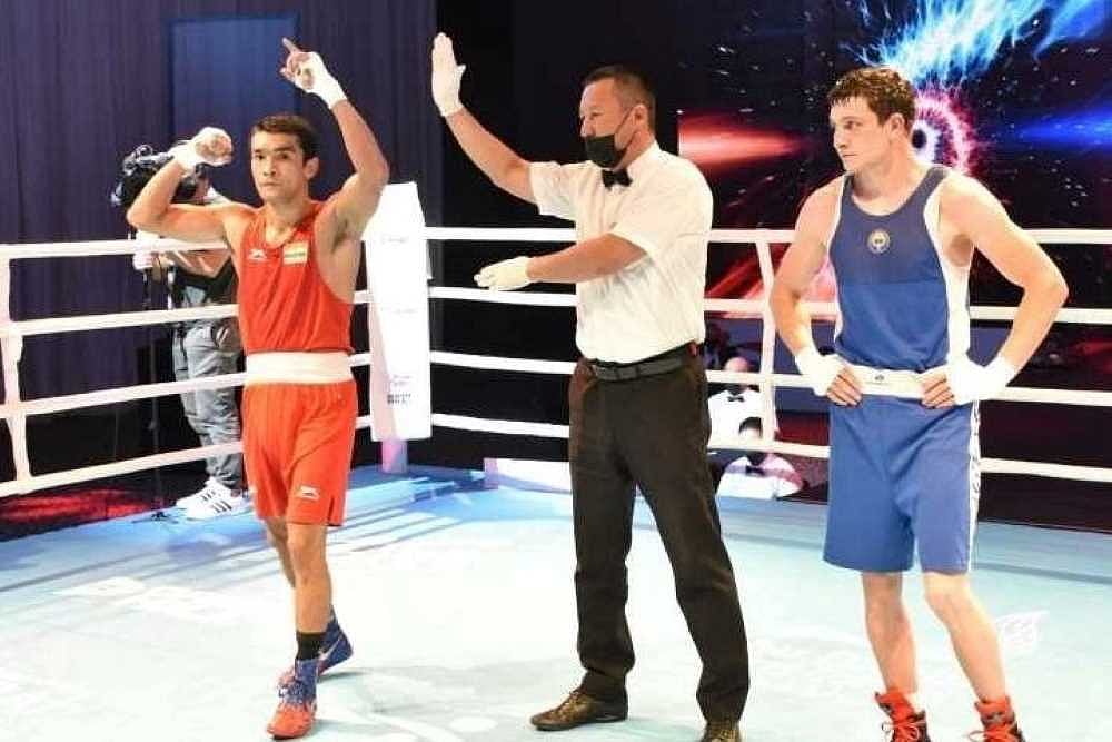 The Commonwealth Games bronze medallist Hussamuddin made a cautious start against the Kazakhstan boxer Makhmud Sabyrkhan.