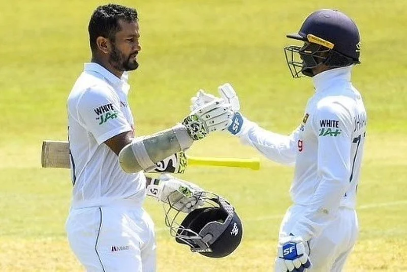 The match appeared to be heading for a draw until the two quick wickets on the final morning. Dhananjaya dragged one onto his stumps after making 166 from 291 balls with the help of 22 fours while Karunaratne was caught at mid-wicke. Taskin Ahmed dismissed both batters.
