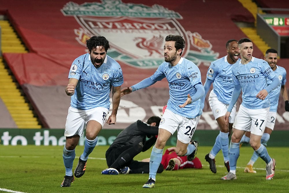 Liverpool at least ended a 410-minute home league goal drought with Mohamed Salah's penalty, cancelling out Ilkay Gundogan's opener.