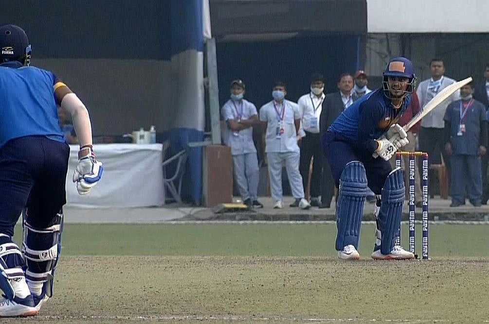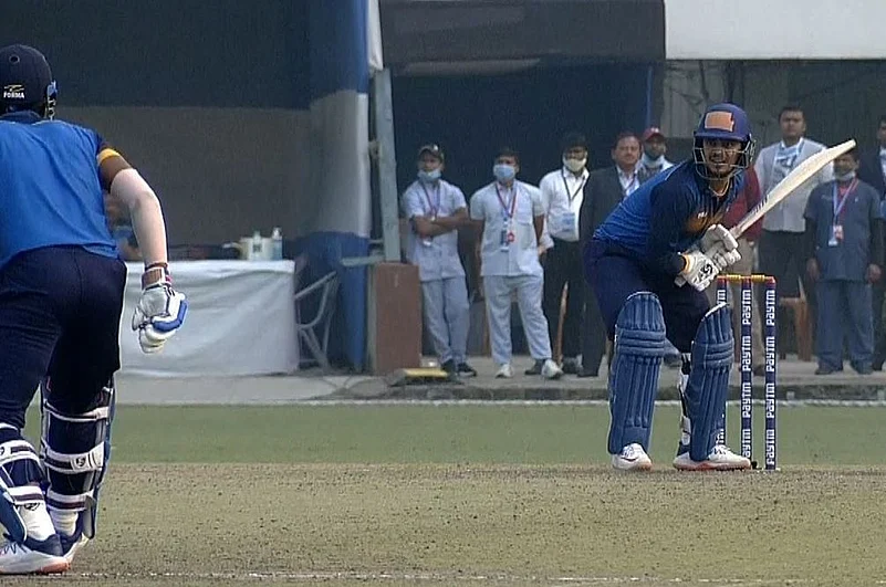 In reply, Jharkhand started in earnest with skipper Ishan Kishan (27) and Utkarsh Singh (29) going on the attack. The dismissal of Kishan by T Ravi Teja did not seem to deter Utkarsh and Virat Singh, who went for their shots.