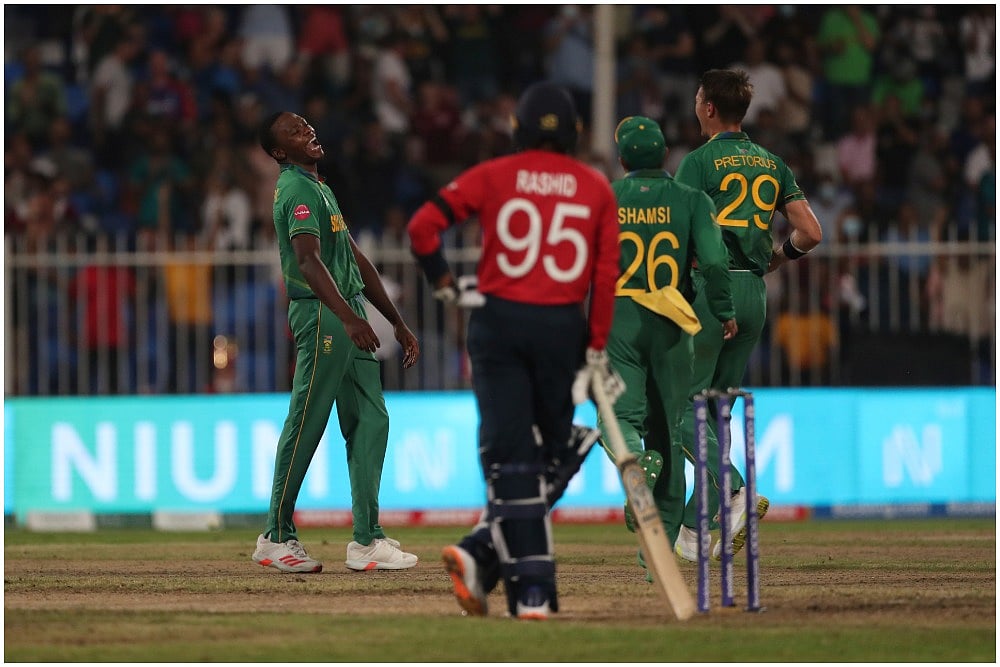 England went past the 131-run mark to send South Africa out of the T20 World Cup with Liam Livingstone hitting three sixes in a row, the unfortunate bowler being Rabada. For South Africa, Tabraiz Shamsi took two wickets while Anrich Nortje and Dwaine Pretorius got one each.