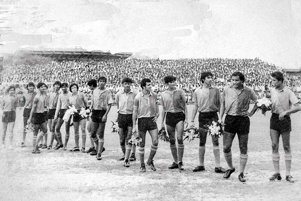 If the club embodied a consolidation of regional identity in the early decades, Partition gave it a further purpose: to the millions of battered and immiserated refugees fleeing what became East Pakistan, the club offered a direly needed symbolic salve. Footballing excellence resulted in pride, hope and confidence for a dispossessed, hapless generation. Loss of home and hearth forged a fervid credo of defiance in the teeth of odds that fans infused the club with and demanded of its players. Like passion from the favelas made up the life-blood of the Brazilian team, fanatical support from the ‘refugee colonies’ sustained East Bengal for decades. Fittingly, it was during this period that East Bengal was at its rampaging best. In the ’40s and ’50s, the club won a staggering 21 trophies. From 1949-53, it was spearheaded by the ‘Pancha Pandavas’—a lethal forward line, comprising Ahmed Khan, Apparao, P. Venkatesh, P.B. Saleh and Dhanraj, that was the terror of teams across India and has now passed into legend, even myth.