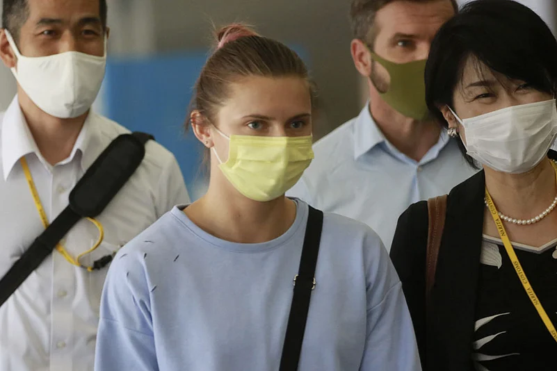 She was seen in Tokyo on Wednesday morning entering Narita International Airport surrounded by an entourage.