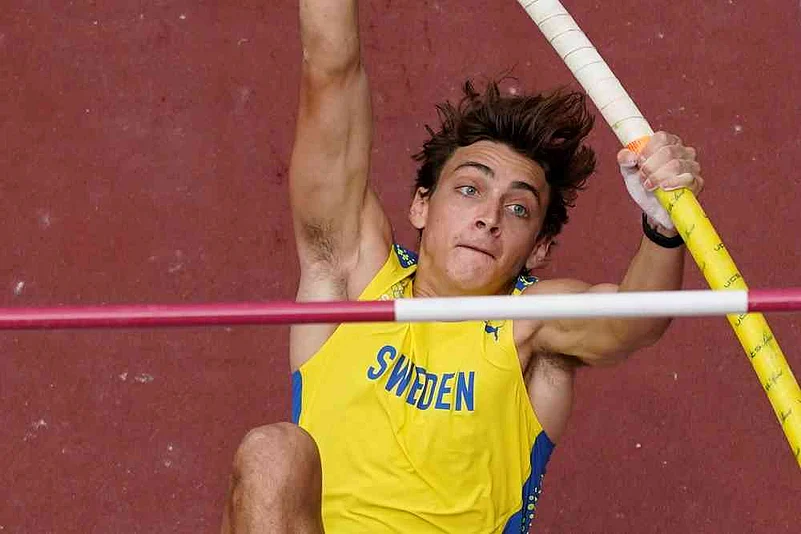 The 21-year-old Duplantis clinched victory at the Tokyo Games with a height of 6.02 meters and then raised the bar to 6.19 meters in a bid to break his own world record.