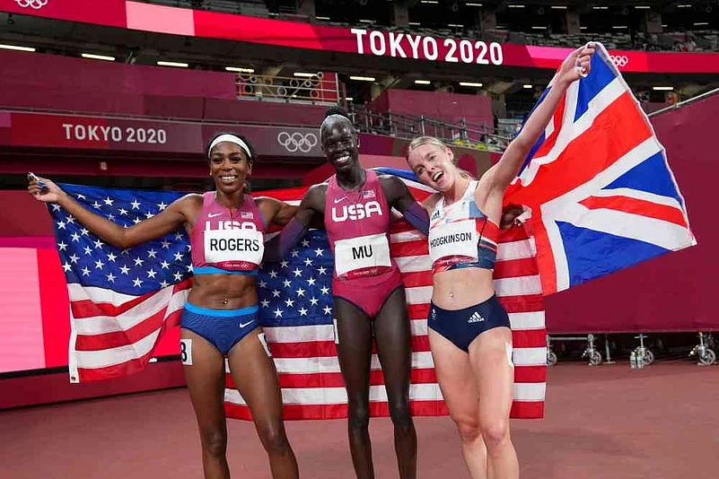 Britain’s Keely Hodgkinson won the silver medal in 1:55.88 and Raevyn Rogers came from nowhere to clinch the bronze on the finish line and give the Americans a double celebration at the Olympic Stadium in Tokyo.