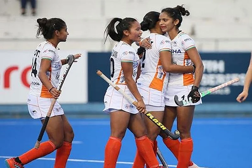 Dragflicker Gurjit Kaur (42nd and 51st) struck brace while Lilima Minz (28th), Sharmila Devi (40th) and Navneet Kaur (46th) were the other scorers.