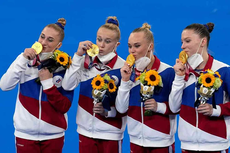 The country — barred at the Olympics from using its name, flag or anthem over a systemic doping scandal — swept the gymnastics team gold medals, among the most coveted at the Summer Games.