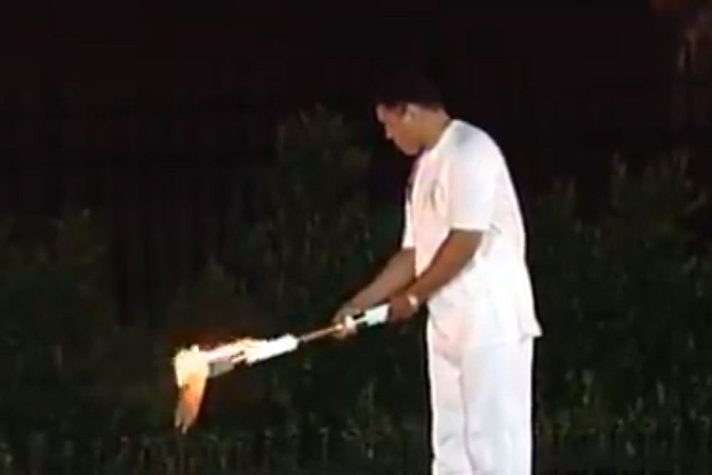 *The Olympic cauldron was ignited using a flaming arrow, lit from the flame of the Olympic torch.