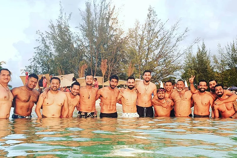 Kohli is known to showcase his gym sessions in social media. He captioned the post as, "Stunning day at the beach with the boys."