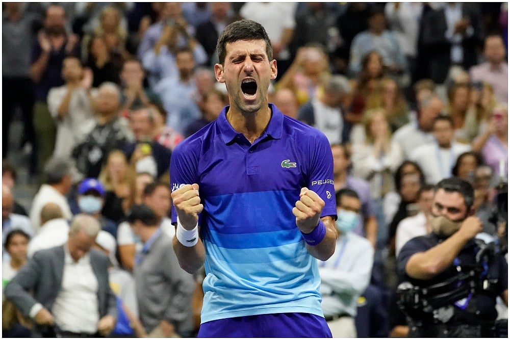 It came at the conclusion of the third set of what eventually became a 4-6, 6-2, 6-4, 4-6, 6-2 victory over Tokyo Olympics gold medalist Alexander Zverev in the semifinals at Flushing Meadows on Friday night, making Djokovic 27-0 in major championships this season.