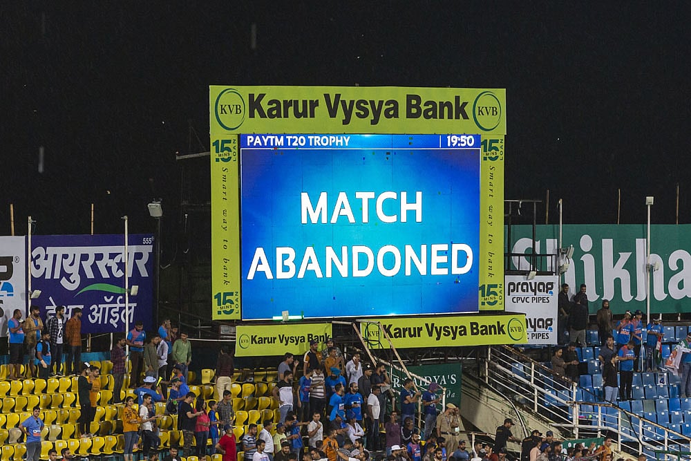 Likewise, the two other Group A games -- Kerala versus Chhattisgarh and Hyderabad versus Goa -- were also abandoned due to inclement weather. Both these games were to be played in Alur on the outskirts of the city.