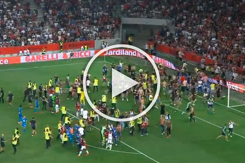 The game had initially been suspended because of the fan violence with about 15 minutes to go on Sunday. When it was decided to restart play, with hosts Nice 1-0 ahead, Marseille refused to return to the field.