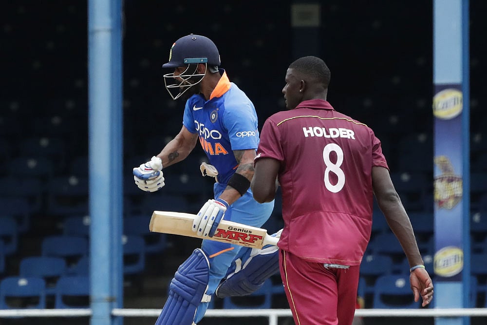 19:42 hrs IST: Jason Holder on with his second over. Virat Kohli hits the second ball for a four. Five runs from the over. IND-39/1 after eight overs.