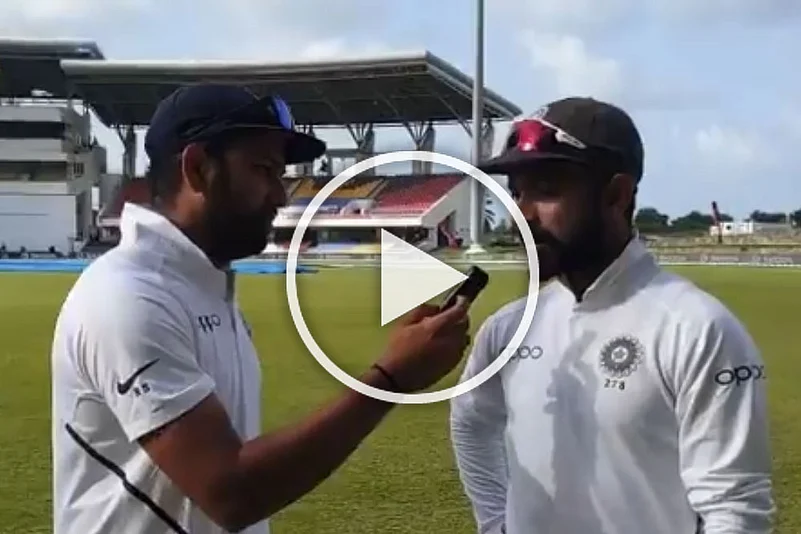 Rohit Sharma, who had to warm the bench during the first Test against West Indies, donned the interviewer's hat to question Jasprit Bumrah and Ajinkya Rahane on their efforts in the opening Test of the series. The duo played vital roles in India's emphatic 318-run victory in Antigua.