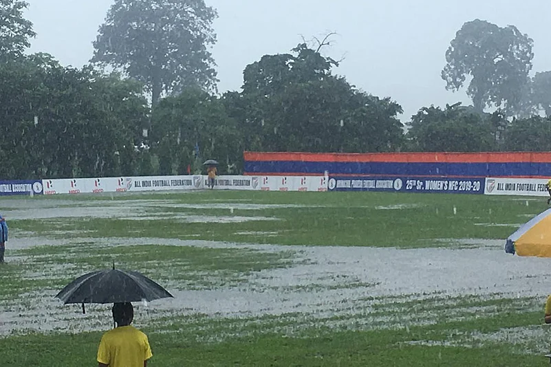 According to reports, the two venues for the tournament - Pasighat and CHF stadiums - held in Arunachal Pradesh were drenched with rainwater and waterlogged. The conditions were poor, and huge puddles had formed.