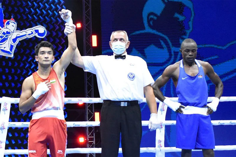 Earlier on Monday night, debutant Akash Sangwan (67kg) also sailed into the second round with a comprehensive 5-0 triumph over Turkey's Furkan Adem.