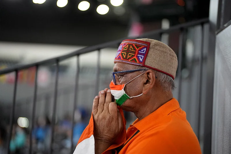 An Indian fan watches PV Sindhu's semi-final match against Taiwan's Tai Tzu-Ying on July 31, 2021. AP photo.