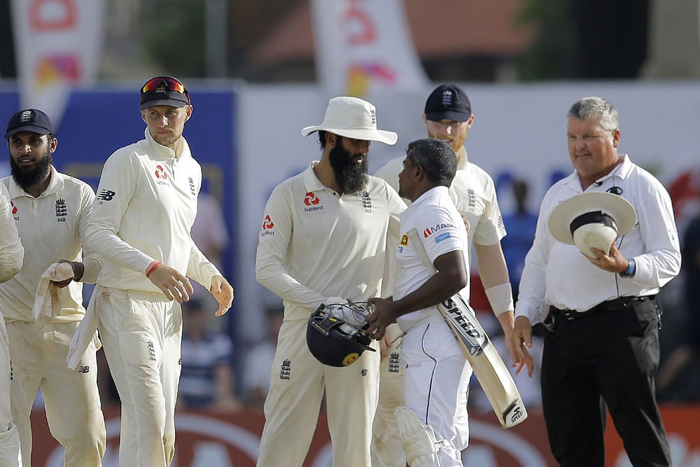 The hosts, chasing 462 for victory, were all out for 250 on the penultimate day of the match, with Moeen Ali taking four wickets and Jack Leach three. Last man out was Herath, returning to the pavilion for the one last time.