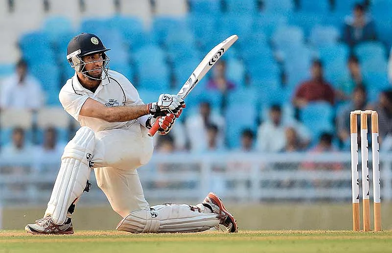 That settled it. Stellar scores in junior, Ranji and India A followed, then experts’ endorsement of a Test No. 3 in incubation. He graduated on to the international scene with an impressive debut in the second Test in Bangalore in 2010 with a match-winning 72 against the Aussies. But injuries, that bane of professional sportsmen, followed. He sat out the disastrous touring season of 2011-12, missing a chance to gain exposure in the West Indies, England and Australia, but bounded back to ply his wares against the English at home, another series most of his teammates would gladly forget.