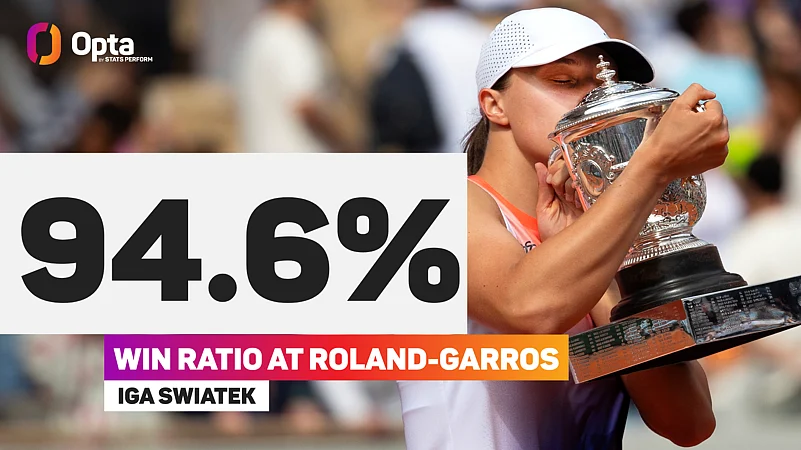 Only Margaret Court (95.2%, 20-1) holds a better winning percentage at Roland-Garros in the Open Era than Swiatek (94.6%, 35-2), while just Evert (29, 1974-1981), Monica Seles (25, 1990-1996) and Justine Henin (24, 2005-2010) have reeled off more consecutive main-draw match wins at the event than Swiatek (21, dating back to the start of the 2022 tournament).