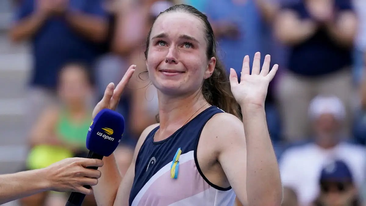 Snigur upset the No. 7 seed 6-2, 0-6, 6-4, then struggled through tears to explain what the victory meant to her family and her country, which is at war with Russia.