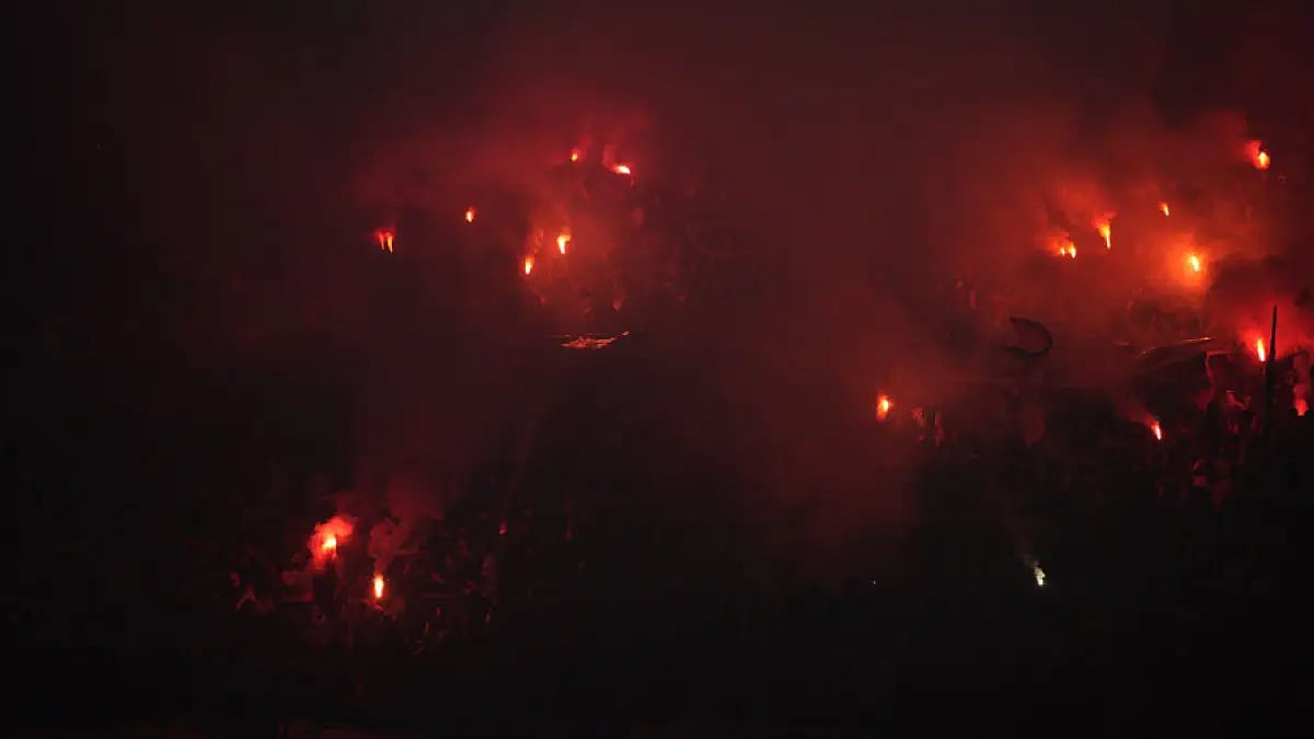 The match began with a thick cloud of smoke hanging over the stadium as Marseille fans lit flares in a pyrotechnics display behind the goal.