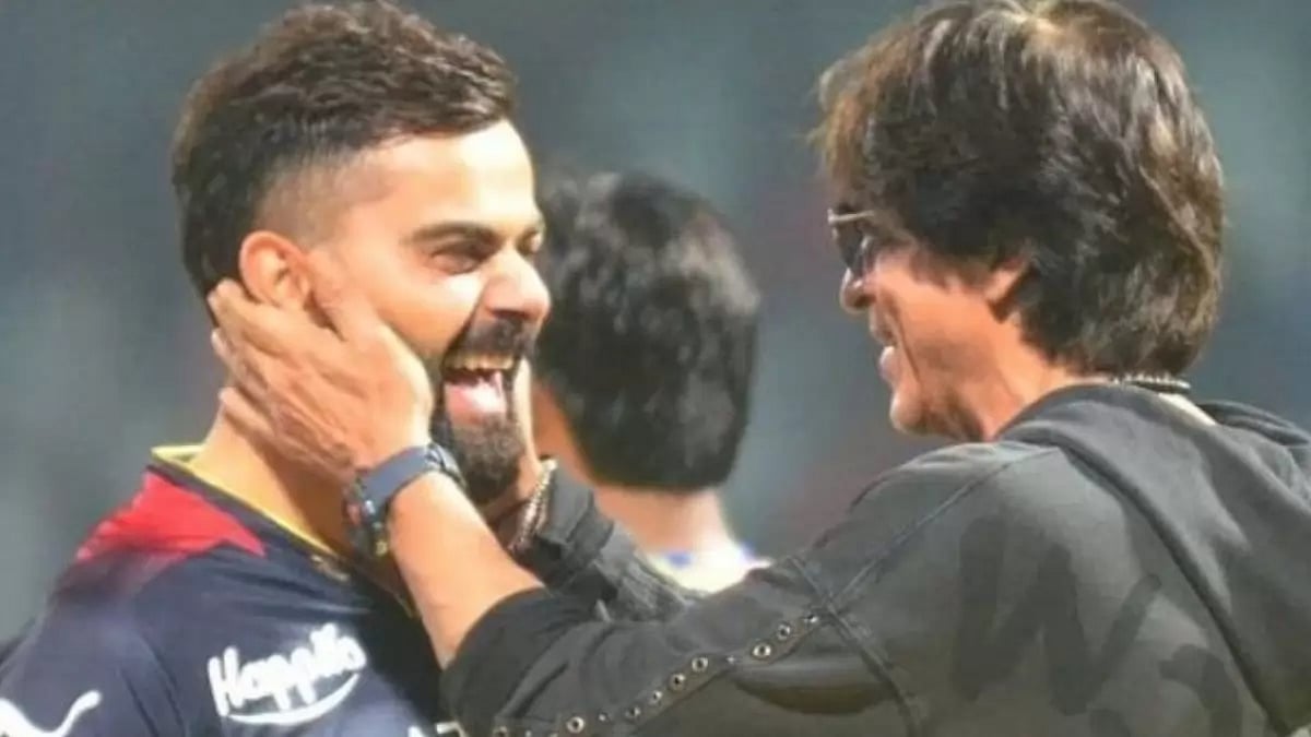 SRK entertained his fans from the stands as he watched his IPL team, Kolkata Knight Riders take on Royal Challengers Bangalore. However, the cutest moment came after the match when Indian cricket star Virat Kohli met up with SRK as the duo shook a leg to 'Jhoome Jo Pathaan'.