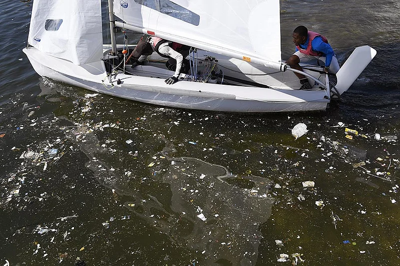 Waste litters the waters of Rio’s Guanabara Bay, to host sailing events
