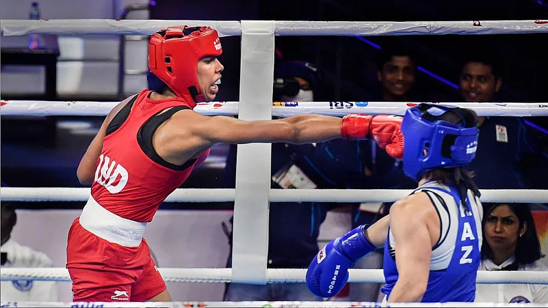 Two other Indians, Lovlina Borgohain (69kg) and Kachari Bhagyabati (81kg), also made it to the quarterfinals with 5-0 and 4-1 wins on points in their respective pre-quarterfinal bouts.
